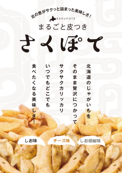 お試し送料無料 さくぽて 3種類セット(塩味、塩コショー味、チーズ味) メール便(ポスト投函便)で送料無料です。